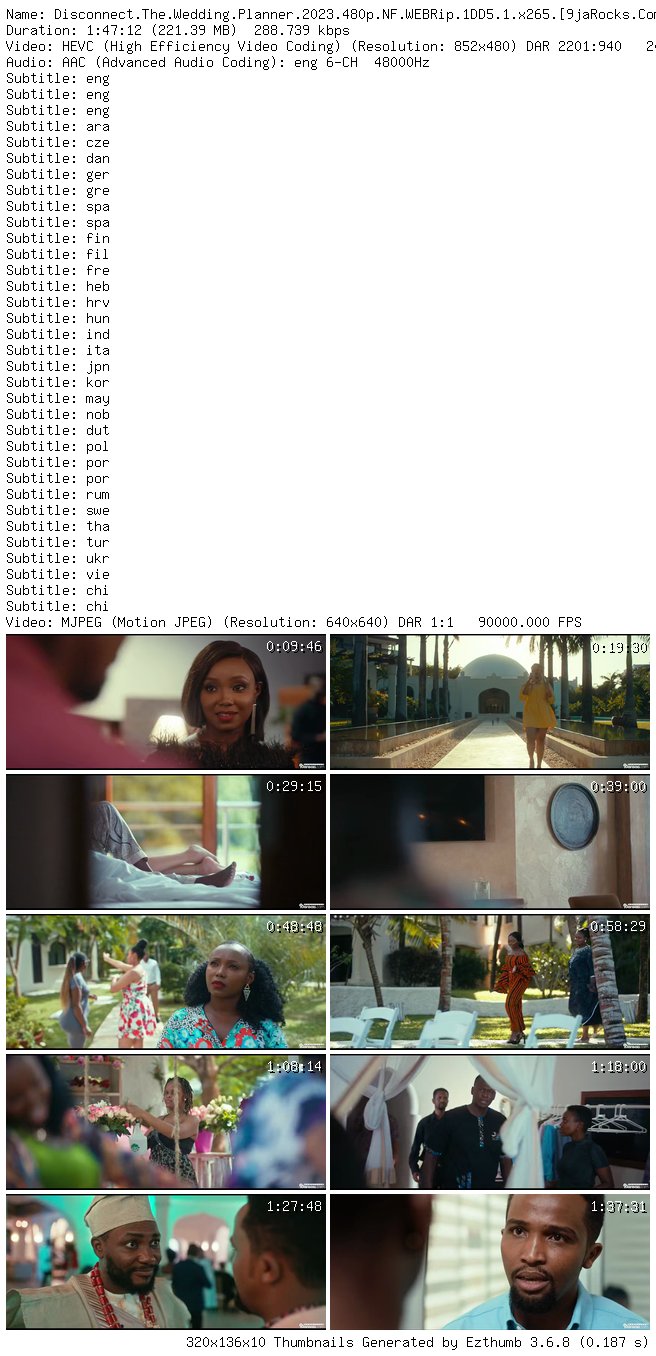 Filename: Disconnect.The.Wedding.Planner.2023.480p.NF.WEBRip.x265.[9jaRocks.Com].mkv