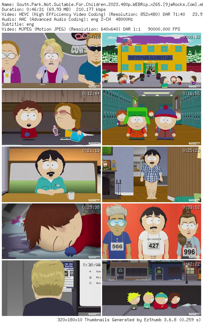 Filename: South.Park.Not.Suitable.For.Children.2023.480p.WEBRip.x265.[9jaRocks.Com].mkv